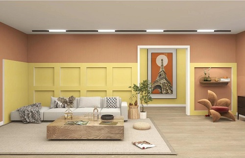 天然居艾草健康植物漆橙色系與黃色系搭配,將這兩種對比色組合在一起,碰撞出兼具當代與復古風味的視覺感受,給予空間一種新的生命。